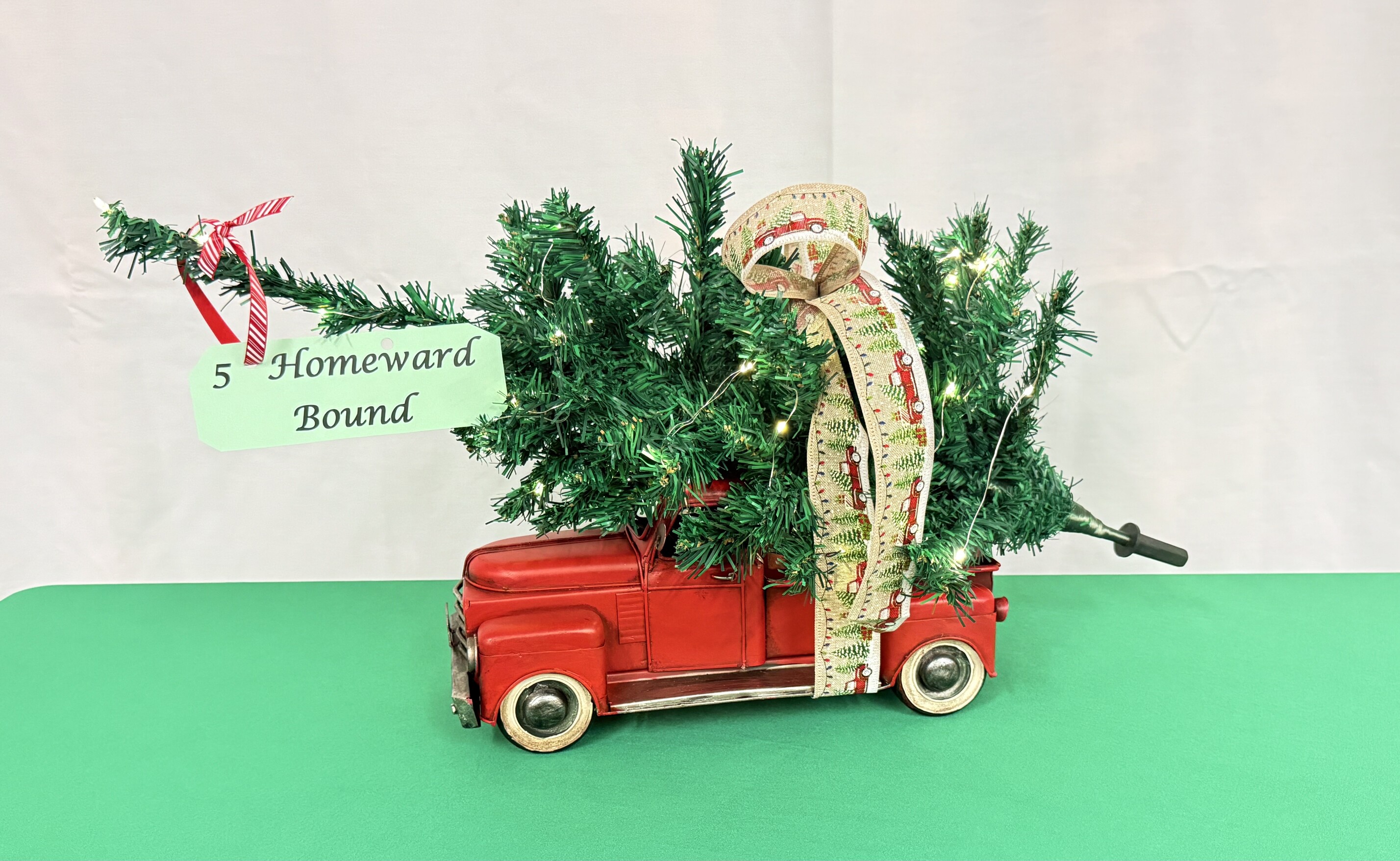 Red truck with lighted tree. $200 Cash prize.