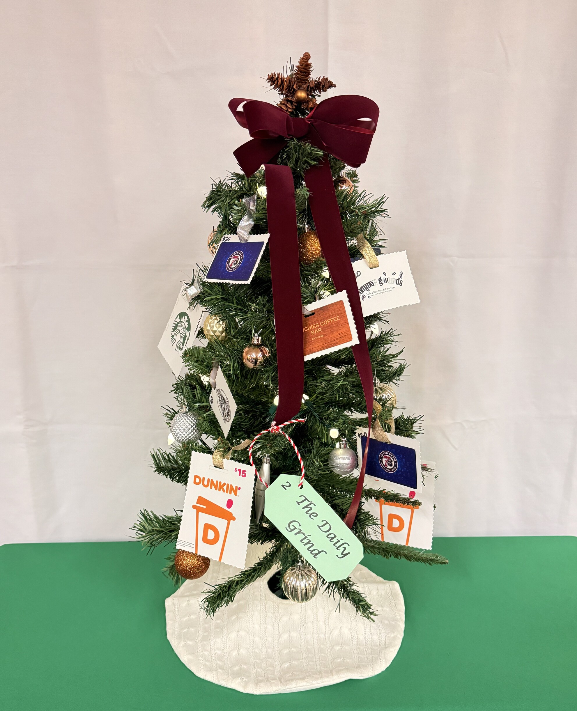 Tree includes $205 in gift cards from Starbucks, Dunkin, Seven Brew, Frenchie’s Coffee Bar, Common Grounds, and the Drowsy Whaler.